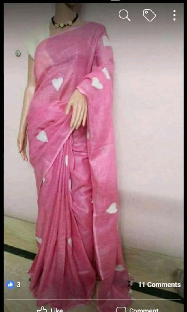 Lenin Sarees With Heart Embroidery Women S Fashion Clothes